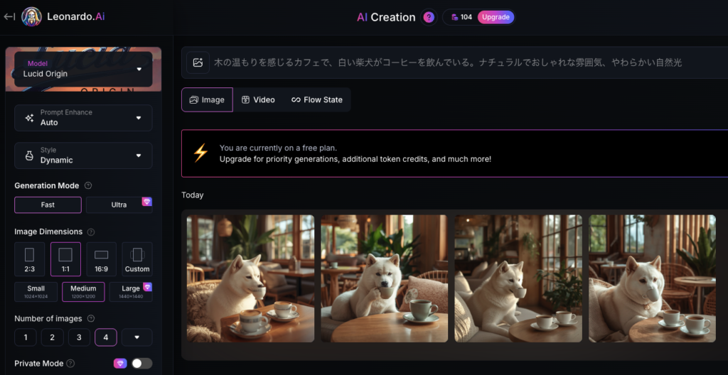 LepnardoはUIが英語。日本語でプロンプトを投げても理解はするが、英語が苦手な人は使いにくい。