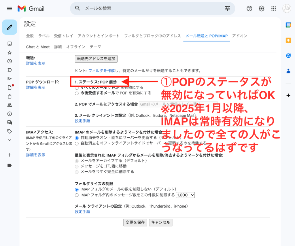 ※2025年1月以降、IMAPは常時有効になりましたので、2025年以降、設定はこのようになっています