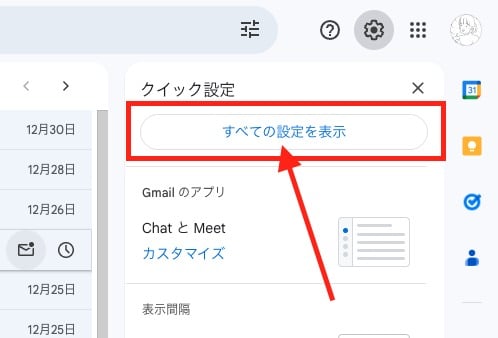 手順③:「すべての設定を表示」をクリック